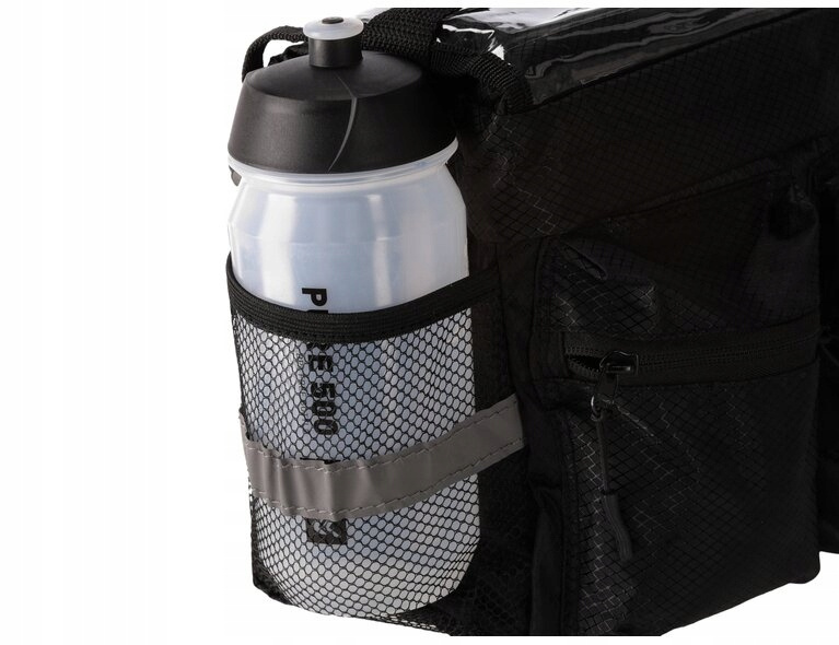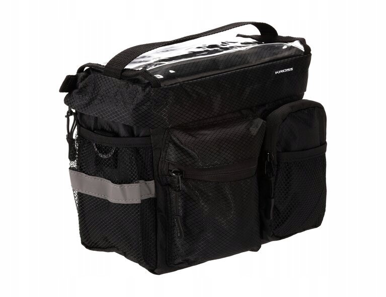 Torba Kross Roamer Map Bag wykonana jest z poliestru, czyli materiału szczelnego, wodoodpornego, a także łatwego w czyszczeniu w przypadku pojawienia się ewentualnych plam i zabrudzeń. Górna część torby rowerowej wyposażona jest dodatkowo w folię, dlatego możliwe jest umieszczenie w niej mapy i korzystanie z niej w trakcie jazdy. Zdecydowanie poprawia to komfort w trakcie długich wycieczek poza miasto, kiedy korzystanie z mapy bywa konieczne. Torba posiada także specjalne paski odblaskowe zapewniające bezpieczeństwo i zwiększające widoczność rowerzysty na drodze.
